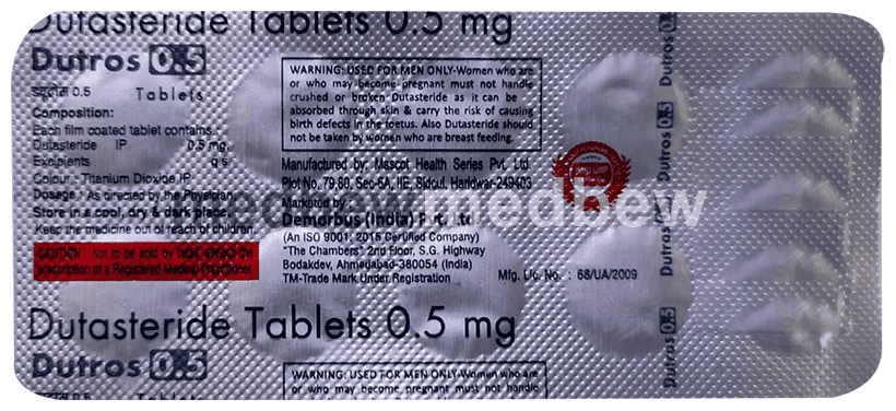 Dutros 0.5 Tablet is used in the treatment of benign prostatic hyperplasia. It shrinks the size of the enlarged prostate gland to relieve symptoms like pain and difficulty in passing urine.