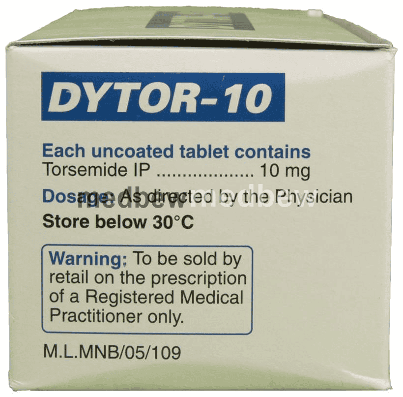 Dytor 10 Tablet belongs to a group of medicines called diuretics or water tablets. It is used to reduce the swelling (edema) caused by too much water in the body in people who have heart failure, liver disease, or kidney disease. This medicine is also used to treat high blood pressure.
