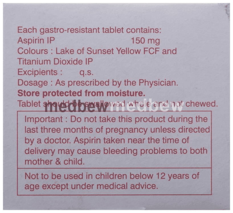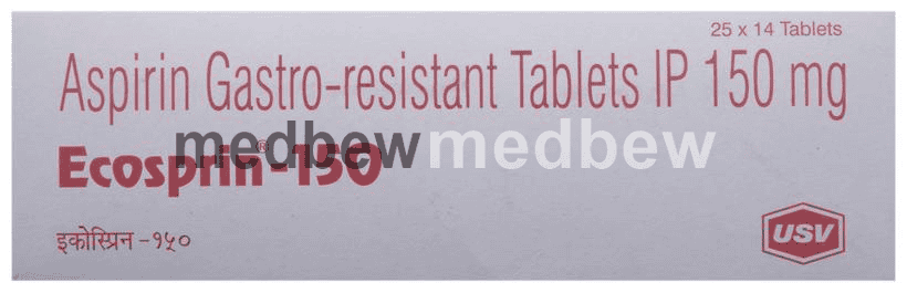 Ecosprin 150 Tablet is an antiplatelet medicine used to treat and prevent heart attacks, strokes, and heart-related chest pain (angina). It helps to prevent the formation of blood clots in your blood vessels. It is a very widely used medicine for heart protection.