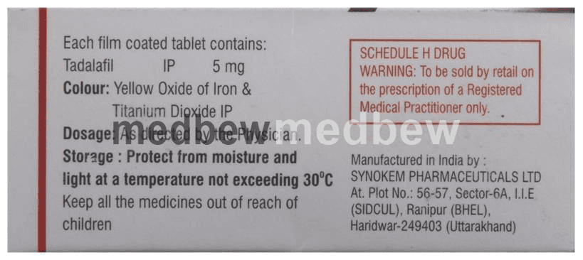 Efil 5mg Tablet has two main uses. The most common is to treat erectile dysfunction in men. It increases blood flow to the penis to help men get an erection. It is also used in the treatment of benign prostate hyperplasia (BPH).