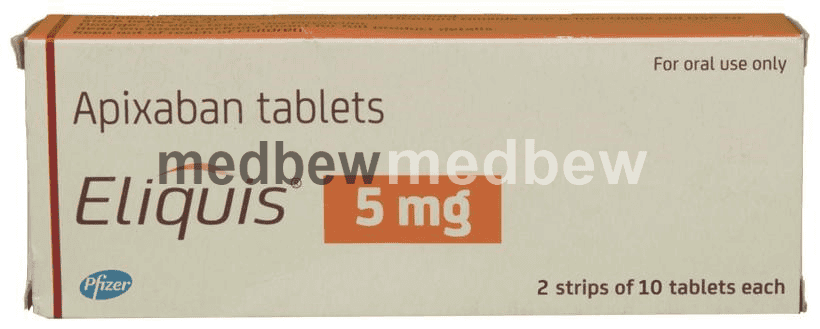 Eliquis 5mg Tablet is commonly used in patients with irregular heart rhythm (atrial fibrillation) to prevent clot formation. It also reduces the risk of getting clots in people who have undergone knee or hip replacement surgeries. It can be taken with or without food and it is best to take them at the same time each day. You may need to take this medicine for many years, even for life in some cases.