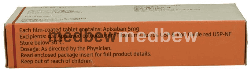 Take this medicine in the dose and duration as advised by your doctor. Swallow it as a whole. Do not chew, crush or break it. Eliquis 5mg Tablet may be taken with or without food, but it is better to take it at a fixed time.