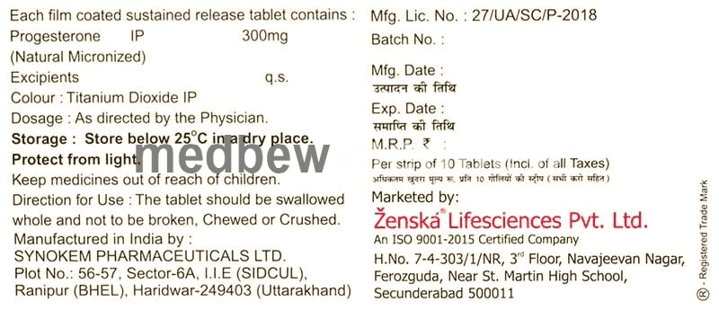 Embronat SR 300 Tablet contains progesterone, a female hormone that is important in the regulation of ovulation and menstruation. It is used to cause menstrual periods in women who have not reached menopause but are not having periods due to a lack of natural progesterone in the body. This medicine helps to prepare the uterus for pregnancy by causing the uterus lining (endometrium) to thicken. This increases the chance of a successful pregnancy. You should use the medicine as prescribed for it to be effective. You may be asked to continue with this treatment for a period after becoming pregnant.show moreshow less