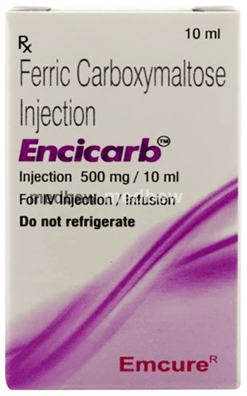 Encicarb Injection is an iron replacement medicine. It is used to treat a type of anemia where you have fewer amount of red blood cells due to insufficient iron in your body (iron-deficiency anemia). Iron is needed to produce the red blood cells that carry oxygen around your body.