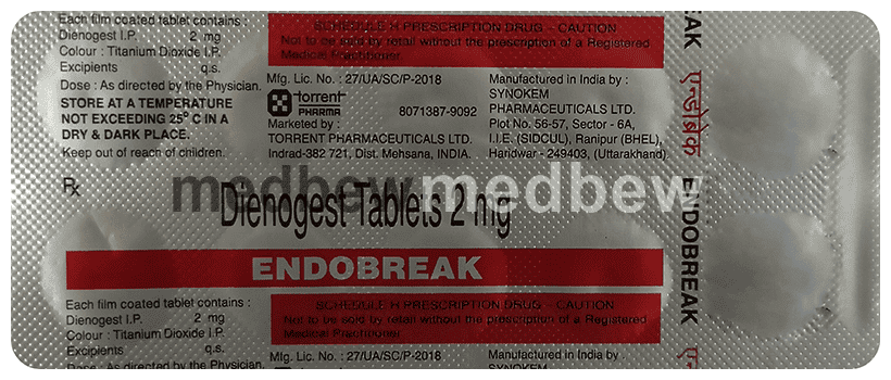 Endobreak 2mg Tablet contains a medicine Dienogest, which is a type of progesterone (a female sex hormone). It is used in the treatment of endometriosis, a painful disorder in which the tissue that normally lines the inside of your uterus grows outside your uterus.