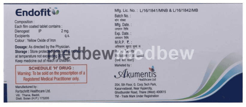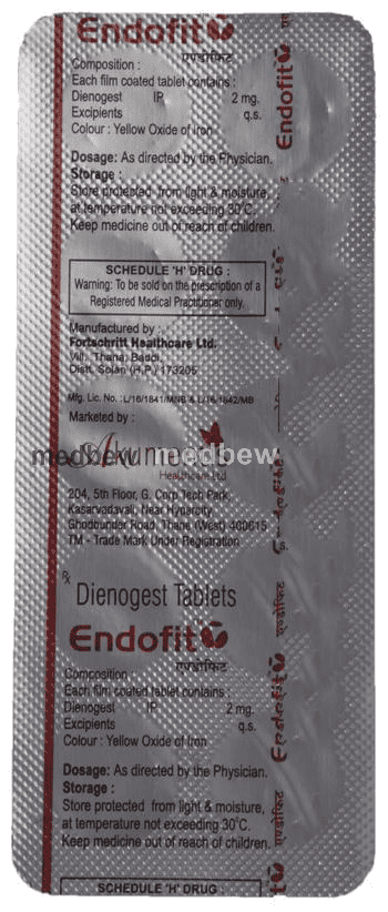 Endofit Tablet contains a medicine Dienogest, which is a type of progesterone (a female sex hormone). It is used in the treatment of endometriosis, a painful disorder in which the tissue that normally lines the inside of your uterus grows outside your uterus.