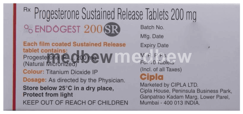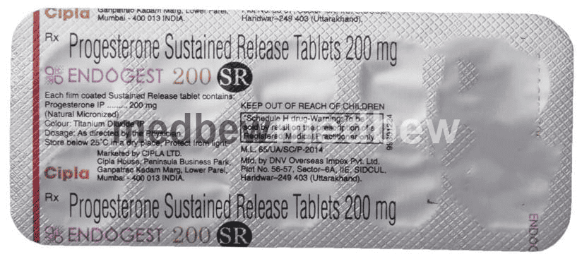 Endogest 200 SR Tablet is a type of progesterone hormone which is extracted from plants, but its property matches with the human progesterone. This medicine undergoes a process called micronization where the size of the natural progesterone is reduced. The small size of the progesterone particles enhances its dissolution and absorption. This provides better availability of Endogest 200 SR Tablet in the body and decreases its side effects.