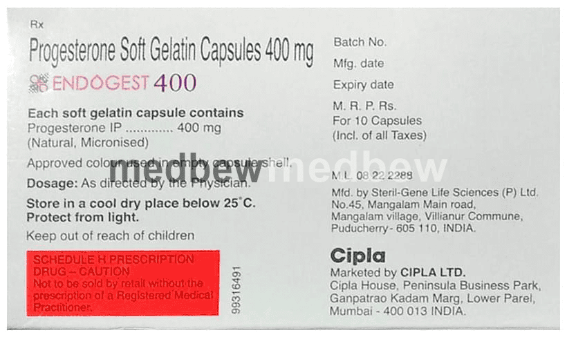 Endogest 400mg Soft Gelatin Capsule is a progesterone (female hormone). It works on the lining of the uterus and helps to establish and maintain pregnancy in infertile women. It helps in protecting the uterus from the negative effects of oestrogen when used for the treatment of postmenopausal symptoms.