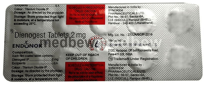 Endonok Tablet contains a medicine Dienogest, which is a type of progesterone (a female sex hormone). It is used in the treatment of endometriosis, a painful disorder in which the tissue that normally lines the inside of your uterus grows outside your uterus.