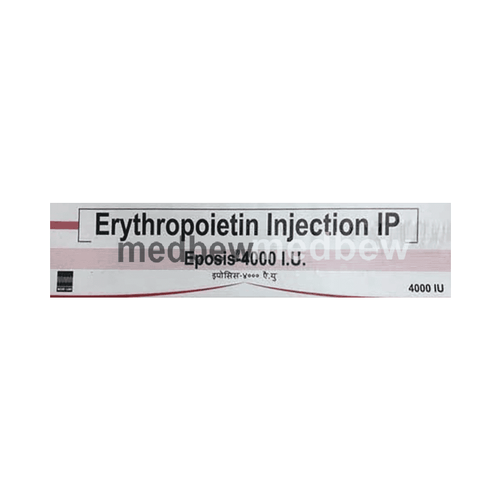 Eposis 4000IU Injection is a medicine that helps your bone marrow to produce more red blood cells. It is used to treat a type of anemia caused by kidney disease. It is also used to treat anemia caused by cancer chemotherapy and by taking medicines to treat HIV.