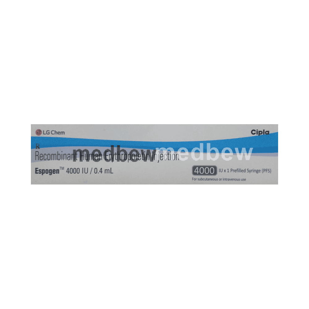 Espogen 4000IU Injection helps in the treatment of anemia that may have occurred due to chronic kidney disease or cancer chemotherapy.