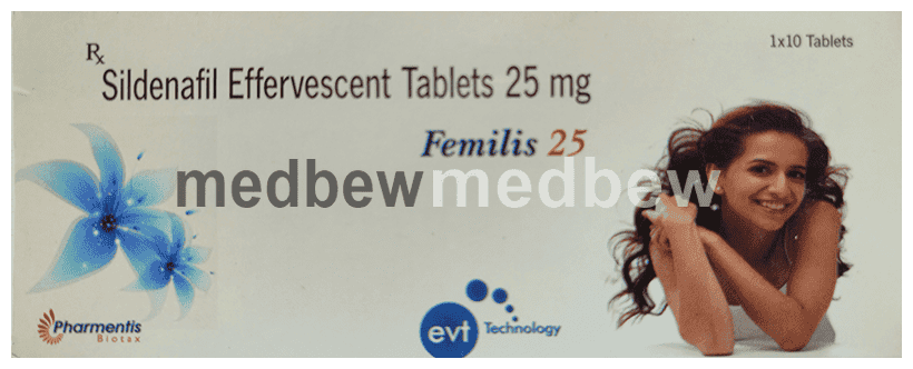 Femilis 25 Effervescent Tablet is a phosphodiesterase (PDE-5) inhibitor. It works by increasing blood flow to the penis by relaxing the muscles in penile blood vessels.