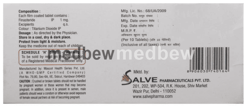 Finap Tablet is used to treat hair loss in men. It is used to increase hair growth and prevent further hair loss with male pattern baldness (gradual thinning of hair with receding hairline or thinning on the top of the head).