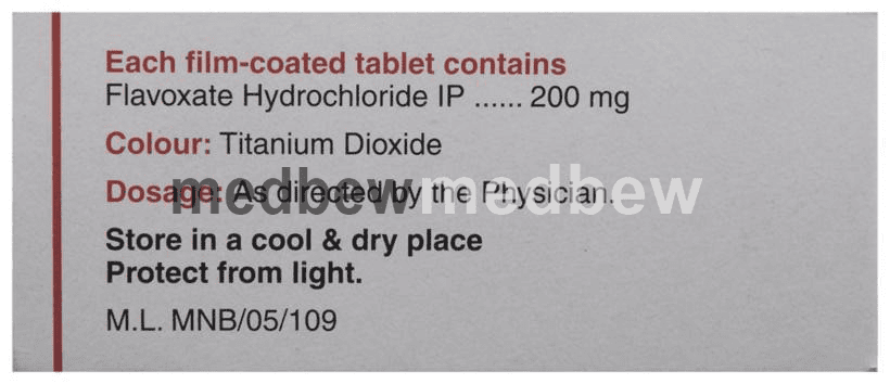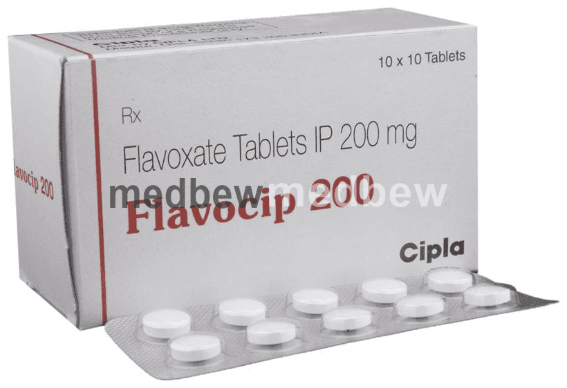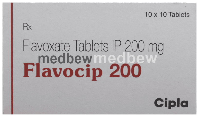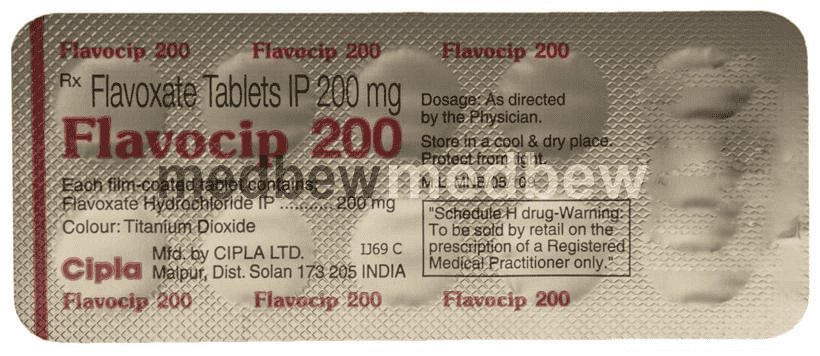 Flavocip 200 Tablet is used to treat and prevent muscle spasms of the urinary tract (the urine passing tube). It relaxes the muscles of the urinary tract to relieve symptoms like painful urination, excessive urination at night, and the inability to control urine flow.