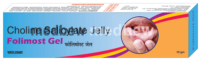 Folimost Gel is a pain relieving medicine. It is used to relieve pain, discomfort, and inflammation caused by mouth ulcers. It is also used to treat cold sores, denture, and sore spots due to orthodontic devices.