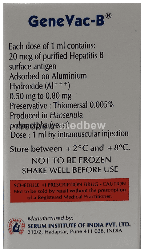 GeneVac-B Adult Vaccine is an active immunizing agent. It is used for the prevention of hepatitis B infection in individuals considered at risk of exposure to hepatitis B virus.