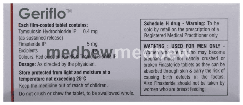Geriflo Tablet SR is a combination of two medicines that work in different ways to treat men with an enlarged prostate gland. It helps to relieve symptoms such as difficulty urinating or needing to go to the toilet more often. It is not used to prevent prostate cancer.