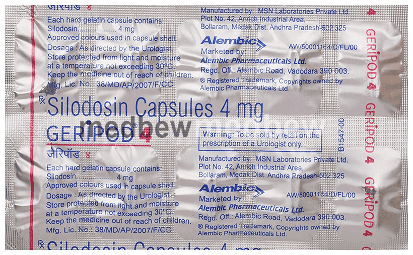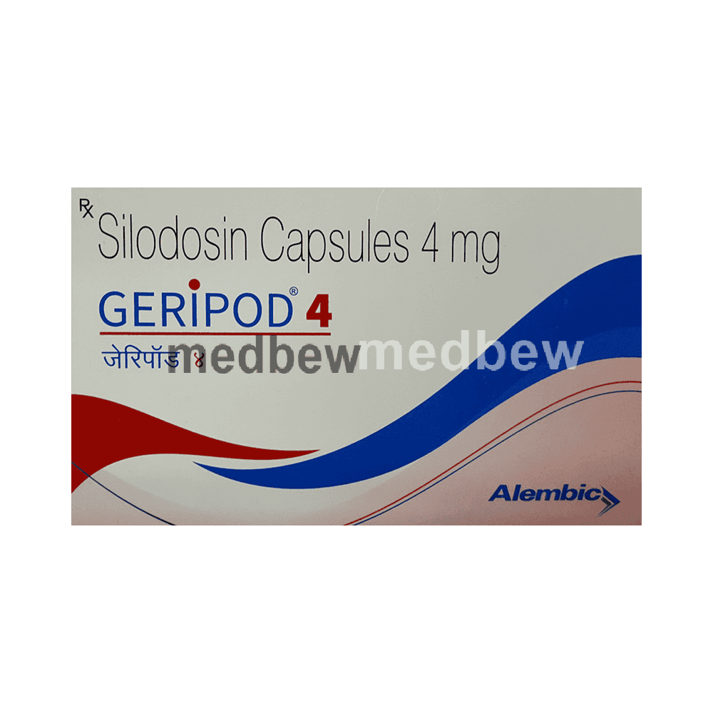 Geripod 4 Capsule is an alpha adrenergic antagonist that is used in the treatment of benign prostatic hyperplasia. It helps to relieve symptoms like difficulty in passing urine. However, it does not decrease the size of the prostate.