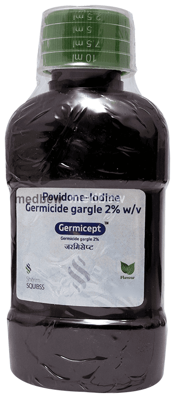 Germicept 2% Gargle is a versatile antiseptic that is used for the treatment and prevention of infection. Germicept 2% Gargle kills and prevents the growth of infection-causing microbes, thereby preventing abrasions, cuts, and wounds, or any break in the skin from getting infected. The antiseptic effect is caused due to the slow release of iodine. Keep the affected area clean and use the medicine as prescribed by your doctor.show moreshow less