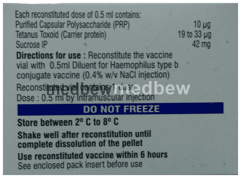 Hibe Vaccine Combipack (Each 0.5ml) is an active immunizing agent. It is used to prevent infection caused by Haemophilus influenzae type B (Hib) bacteria. The vaccine helps to protect the body against the disease.