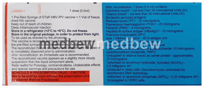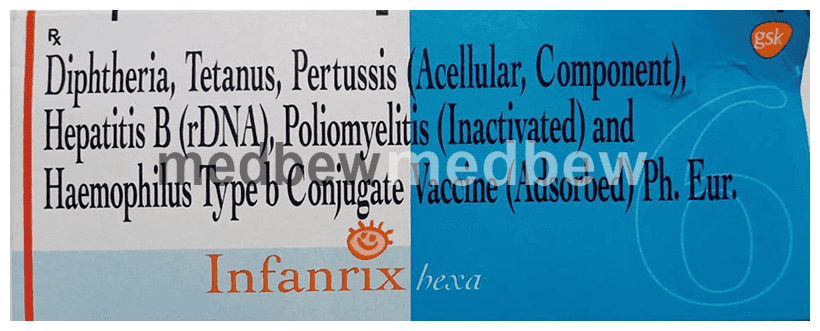 Infanrix Hexa Vaccine is a combination of multiple vaccines. It is used to prevent diphtheria, tetanus, pertusis, polio, haemophilus influenzae type B disease, and hepatitis B infection in infants and toddlers. It promotes the immune system to act against microorganisms to prevent such infections.