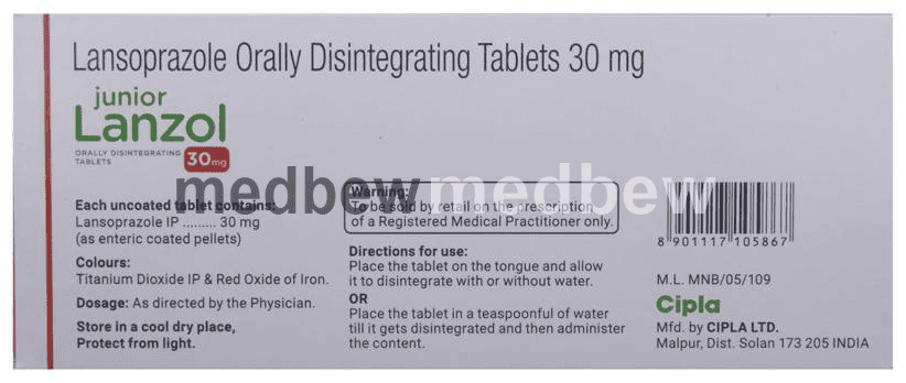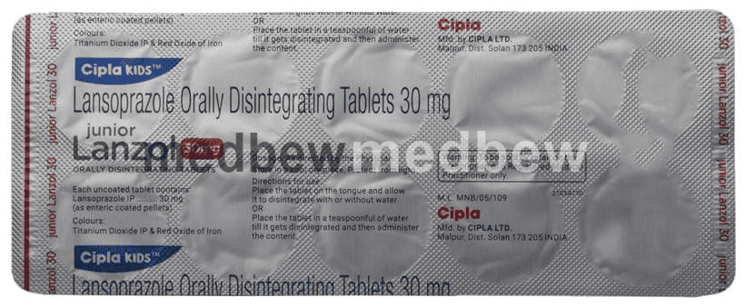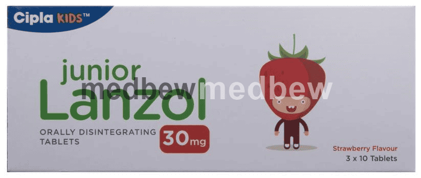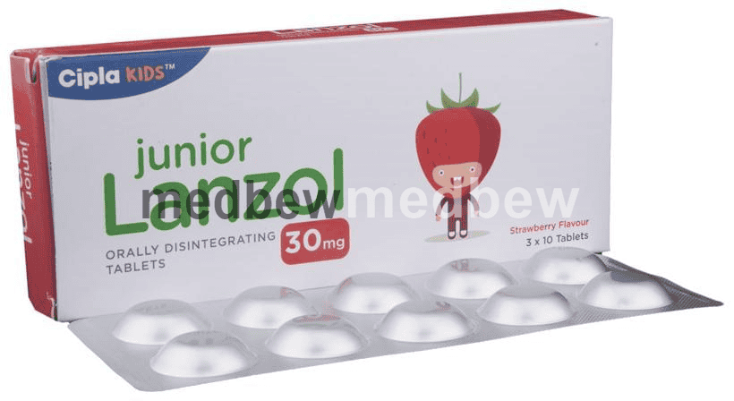 Junior Lanzol 30mg Tablet DT is a medicine that reduces the amount of acid produced in your stomach. It is used for treating acid-related diseases of the stomach and intestine such as acid reflux, peptic ulcer disease, and some other stomach conditions associated with excessive acid production.
