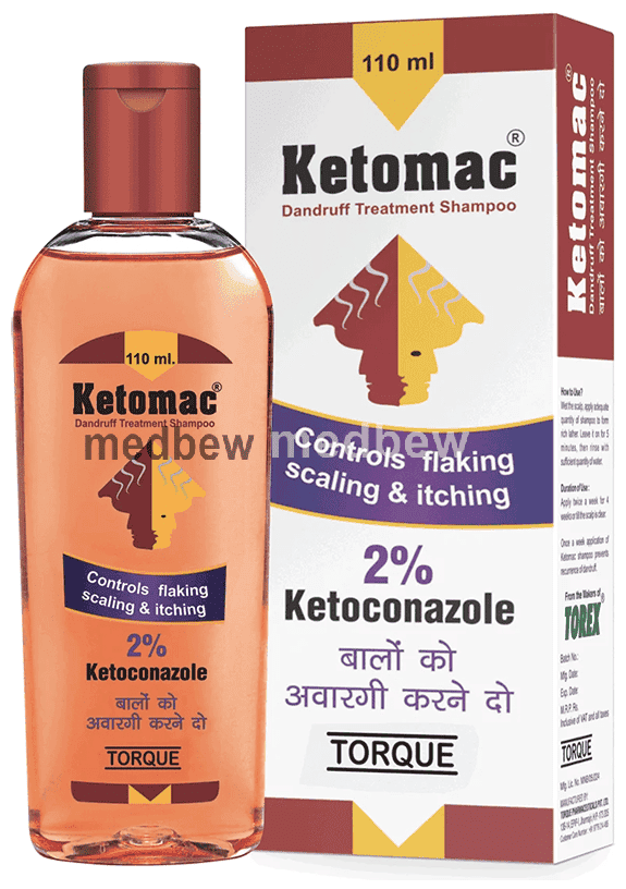 Ketomac Shampoo is an antifungal medication used to control scaling, flaking and itching caused by dandruff. Dandruff is caused by excessive growth of Pityrosporum orbiculare (Malassezia furfur), which is part of normal skin flora. It is also used to treat irregular white or brown patches which occur on the body and sometimes appear after being in the sun (tinea/pityriasis versicolor). Regular application of Ketomac Shampoo on the scalp relieves itching and discomfort in people suffering from dandruff.