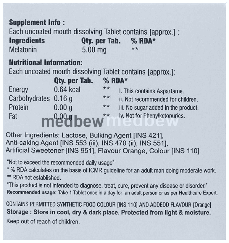 Lamrest 5 Tablet is a natural hormone which regulates the sleep-wake cycle and helps you fall asleep.