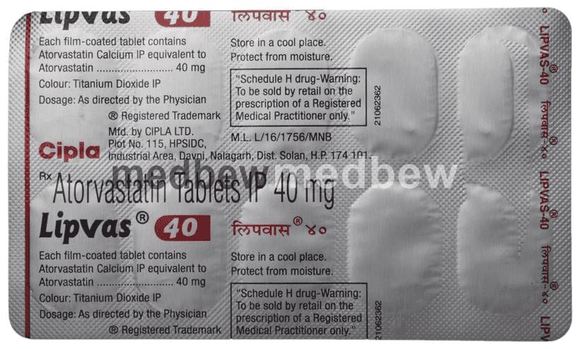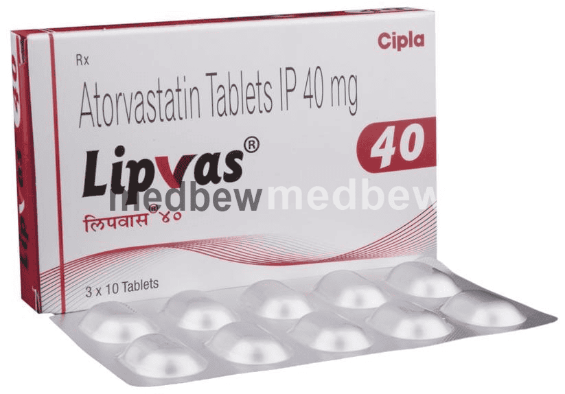 Lipvas 40 Tablet belongs to a group of medicines called statins. It is used to lower cholesterol and to reduce the risk of heart diseases. Cholesterol is a fatty substance that builds up in your blood vessels and causes narrowing, which may lead to a heart attack or stroke.