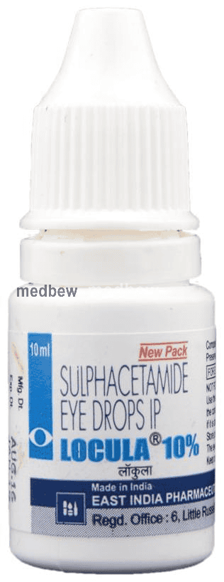 Locula 10% Eye Drop is an antibiotic used to treat bacterial infections of the eye. It fights the infection by stopping the growth of bacteria. This helps to cure the underlying infection.