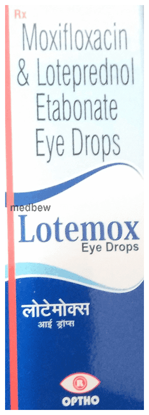 Lotemox Eye Drop is a combination of two medicines: Loteprednol etabonate and Moxifloxacin. Loteprednol etabonate is a steroid which blocks the production of certain chemical messengers (prostaglandins) that make the eye red, swollen and itchy. Moxifloxacin is an antibiotic which prevents bacterial cells from dividing and repairing, thereby killing the bacteria. This treats your eye infection and inflammation.