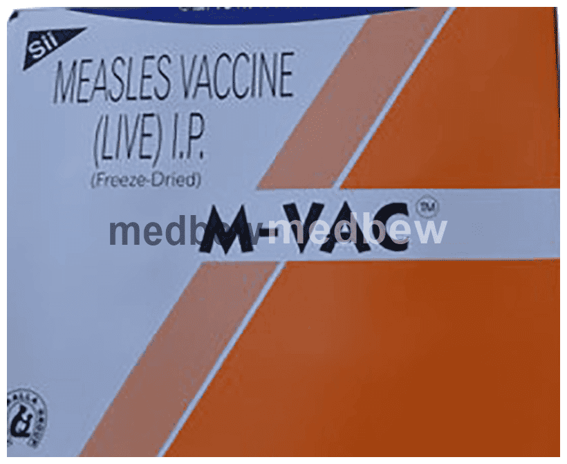 M-Vac Vaccine given as a shot to prevent measles in children. Two doses of the vaccine are given at 9 to 12 months and 16 to 24 months of age. If a child misses the scheduled dose, it can be given till 5 years of age.