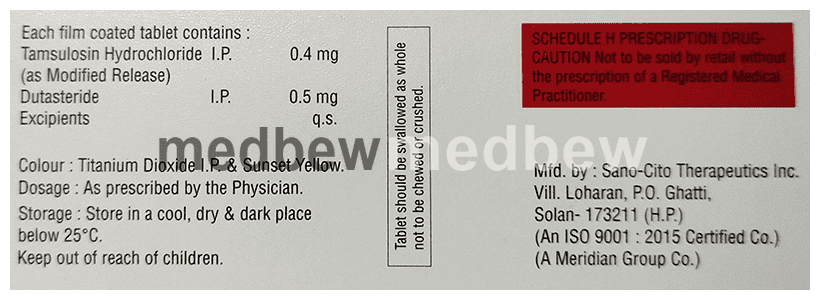 Maxpee D Tablet MR is a combination of two medicines that work in different ways to treat men with an enlarged prostate gland. It helps to relieve symptoms such as difficulty urinating or needing to go to the toilet more often. It is not used to prevent prostate cancer.
