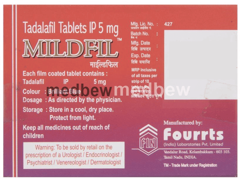 Mildfil Tablet is a phosphodiesterase (PDE-5) inhibitor. It works in erectile dysfunction by increasing blood flow to penis by relaxing the muscles in penile blood vessels.