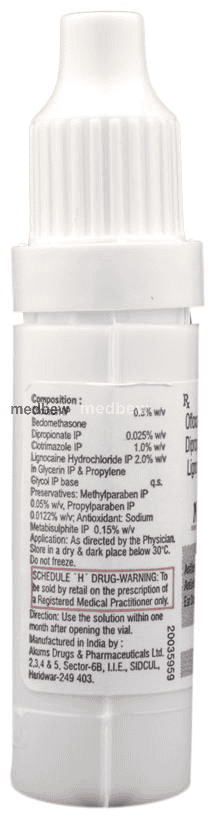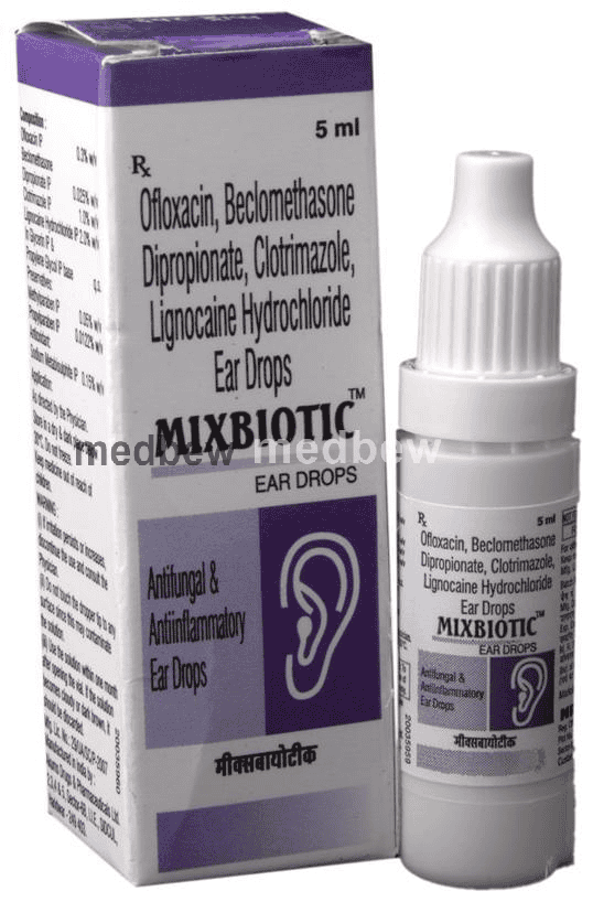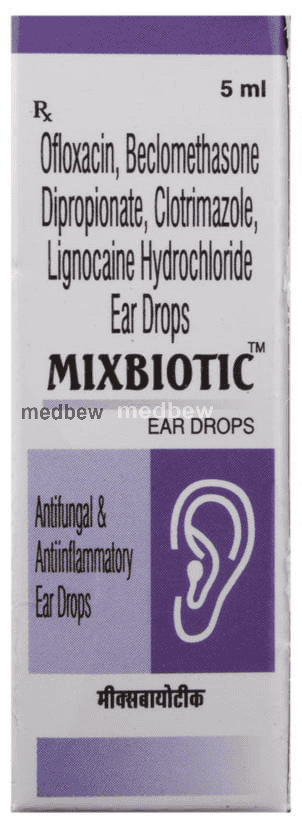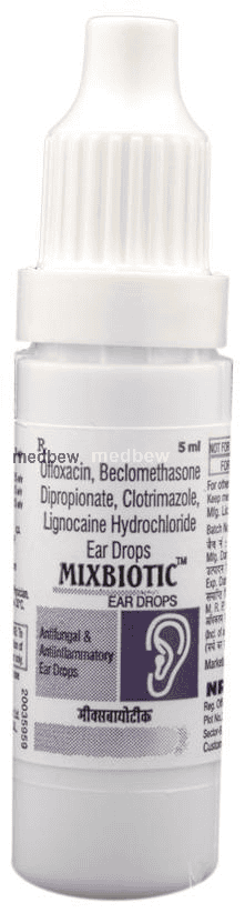 Mix Biotic Ear Drop is a combination of four medicines: Lidocaine, Clotrimazole, Beclometasone and Ofloxacin. Lidocaine is a local anesthetic which works by blocking pain signals from the nerves to brain to decrease pain sensationin the ear. Clotrimazole is an antifungal which stops the growth of fungi while Ofloxacin is an antibiotic that prevents bacterial cells from dividing and repairing. This treats your ear infection. Beclometasone is a steroid. It blocks the production of certain chemical messengers (prostaglandins) that make the ear red, swollen and itchy.
