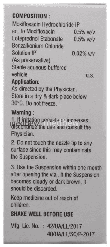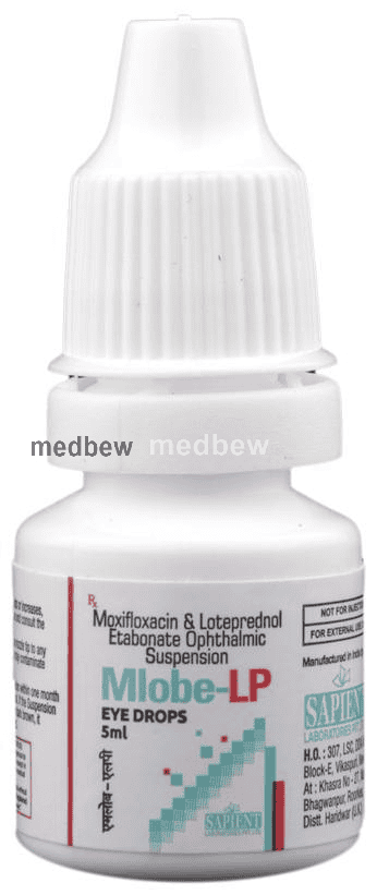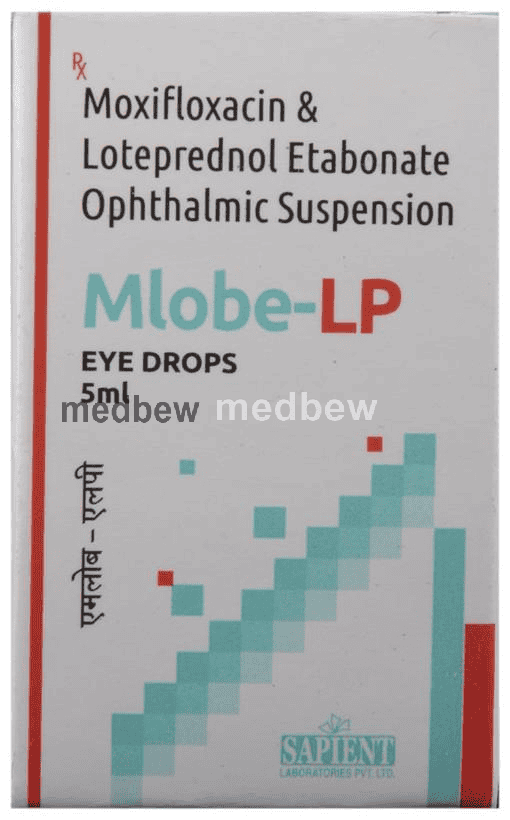 Mlobe-LP Eye Drop is a combination of two medicines: Loteprednol etabonate and Moxifloxacin. Loteprednol etabonate is a steroid which blocks the production of certain chemical messengers (prostaglandins) that make the eye red, swollen and itchy. Moxifloxacin is an antibiotic which prevents bacterial cells from dividing and repairing, thereby killing the bacteria. This treats your eye infection and inflammation.