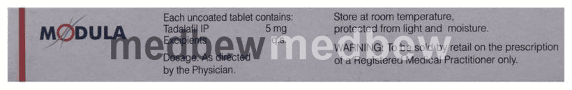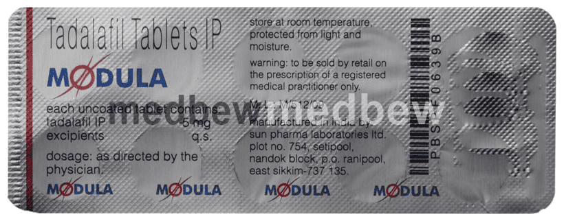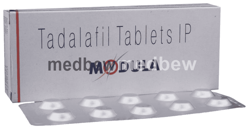 Modula Tablet is a phosphodiesterase (PDE-5) inhibitor. It works in erectile dysfunction by increasing blood flow to penis by relaxing the muscles in penile blood vessels.