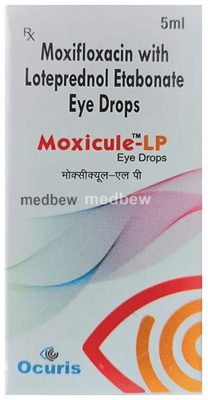 Moxicule-LP Eye Drop is a combination of two medicines: Loteprednol etabonate and Moxifloxacin. Loteprednol etabonate is a steroid which blocks the production of certain chemical messengers (prostaglandins) that make the eye red, swollen and itchy. Moxifloxacin is an antibiotic which prevents bacterial cells from dividing and repairing, thereby killing the bacteria. This treats your eye infection and inflammation.
