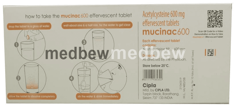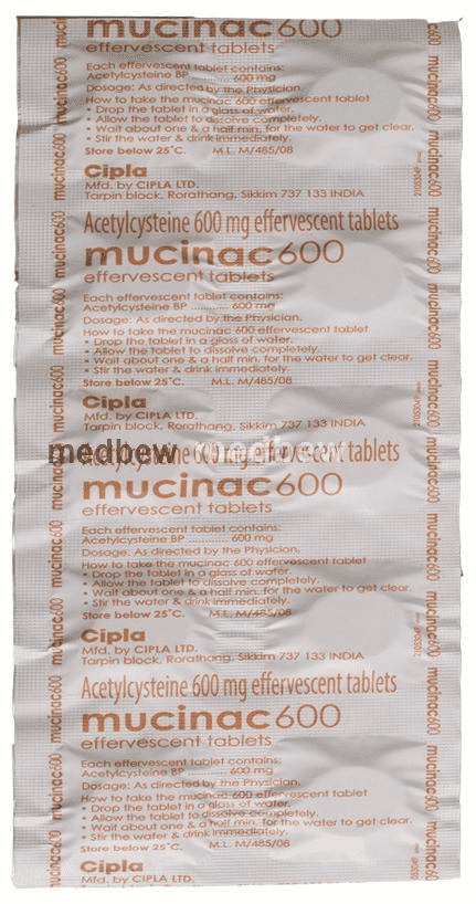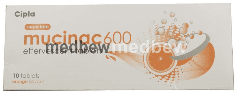Mucinac 600 Effervescent Tablet Orange Sugar Free is used for reducing mucus secretion in various lung diseases like bronchitis, asthma, and emphysema.