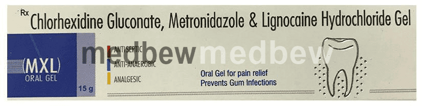 MXL Oral Gel is a combination of three medicines: Lidocaine, Chlorhexidine Gluconate and Metronidazole, which treats mouth sores. Lidocaine is a local anesthetic which forms a protective coating over the mouth sores and blocks pain signals to further relieve pain. Chlorhexidine Gluconate is an antiseptic and disinfectant which effectively cleans out the ulcer surface to prevent infection. Metronidazole is an antibiotic which kills the bacteria and other microorganisms by damaging their DNA.