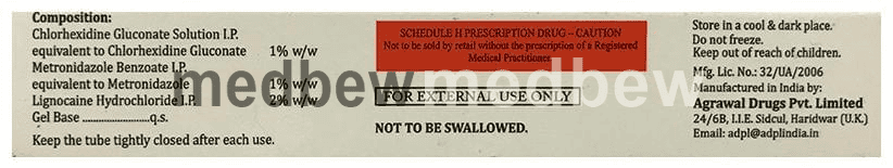 Composition Lidocaine (2% w/w) + Chlorhexidine Gluconate (1% w/w) + Metronidazole (1% w/w)