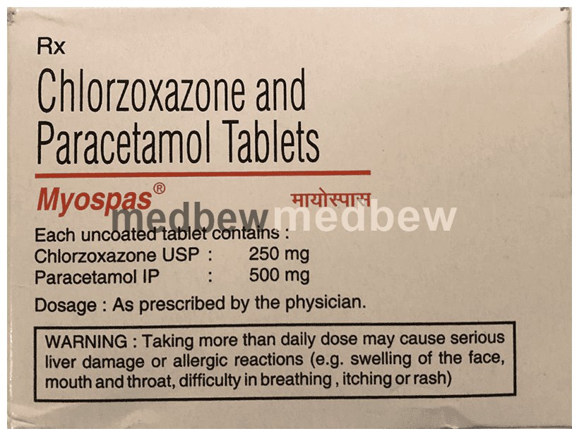 Myospas Tablet is a combination of two medicines used in the treatment of pain due to muscle spasms. It improves the movement of muscles and provides relief from pain and discomfort associated with muscle spasms.