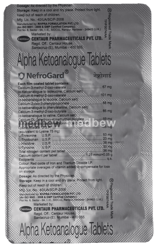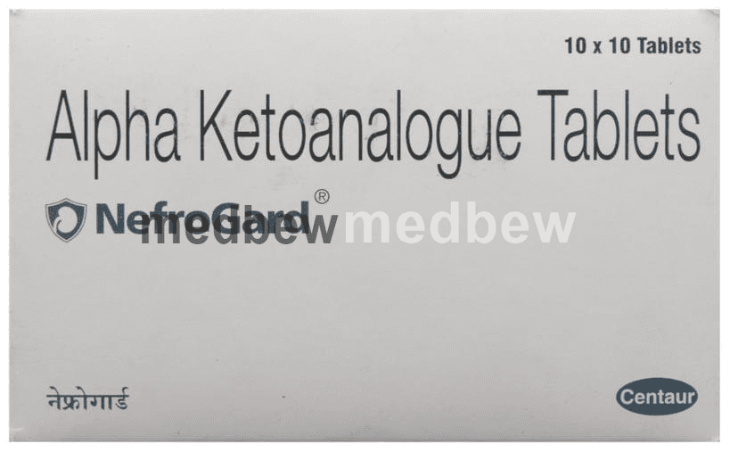 Nefrogard Tablet belongs to a class of drugs called nutritional supplements. It provides nutrition therapy in the patients of chronic kidney failure. This medicine prevents the unnecessary increase in urea levels in the blood.