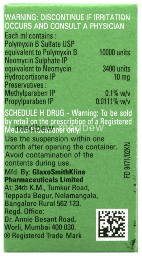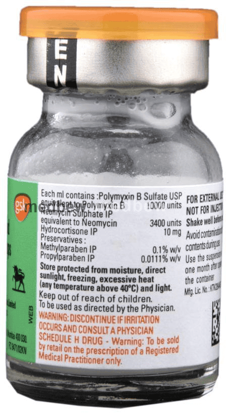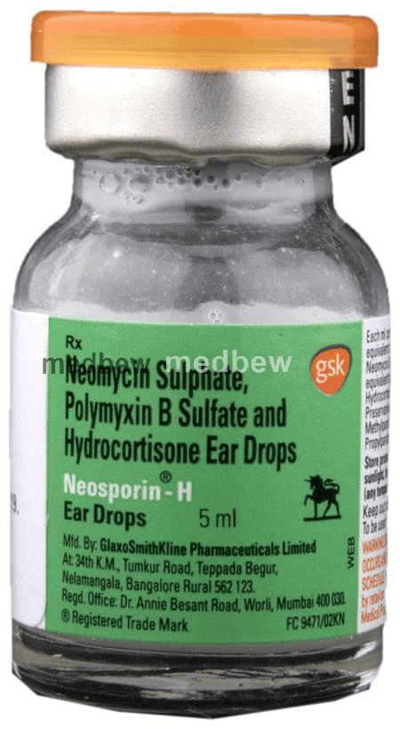 Neosporin H Ear Drop is a prescription medicine used in the treatment of bacterial infections. It kills and prevents the growth of infection-causing bacteria. This way it provides relieves from various symptoms caused by the infection.