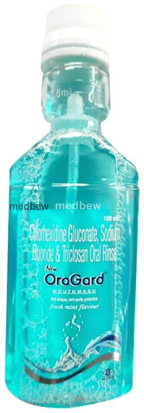 New Orogard Mouth Wash Fresh Mint is a combination of three medicines : Chlorhexidine Gluconate, Sodium Fluoride, and Triclosan. Chlorhexidine Gluconate and Triclosan are antiseptics. They work by killing harmful microorganisms and cleaning the affected area. Sodium Fluoride is a mineral supplement. It works by strengthening the teeth and reducing the effects of acid-producing bacteria on the teeth. This makes them resistant to decay.