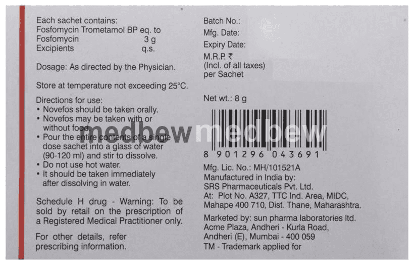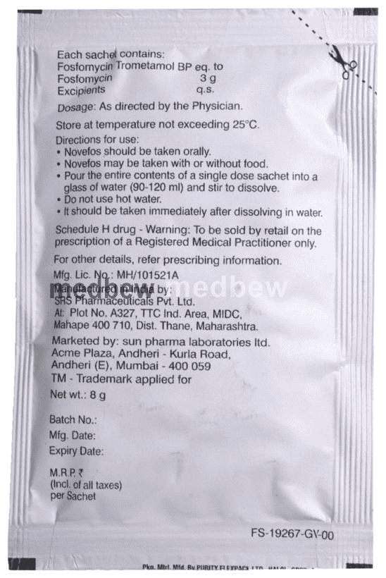 Novefos Powder belongs to a group of medicines known as antibiotics. It works by killing bacteria, which can cause infections. This medicine is used to treat or prevent infections of the urinary tract. It helps to improve your symptoms and cure the infection.