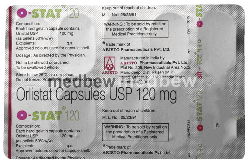 O-Stat 120 Capsule is a medicine used in the treatment of obesity. It helps the body in blocking the absorption of fats from the small intestines and stomach.