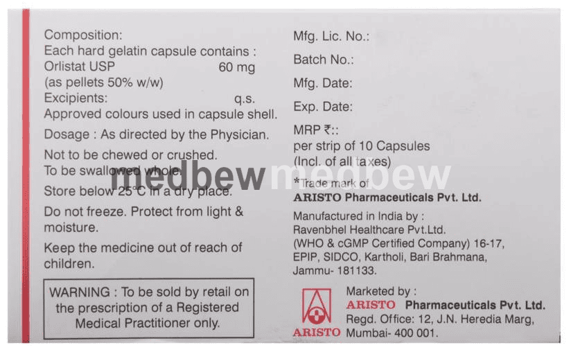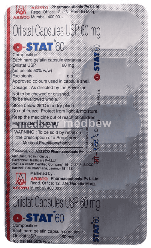 O-Stat 60 Capsule is a medicine used in the treatment of obesity. It helps the body in blocking the absorption of fats from the small intestines and stomach.