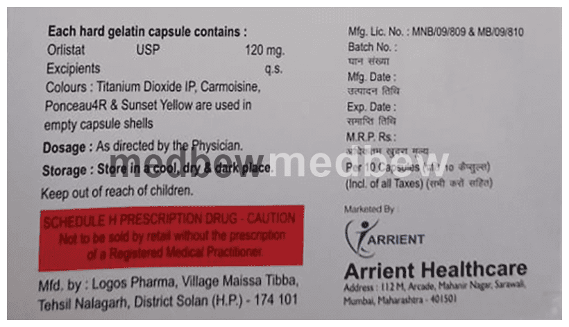 Obiara 120 Capsule is a medicine used in the treatment of obesity. It helps the body in blocking the absorption of fats from the small intestines and stomach.