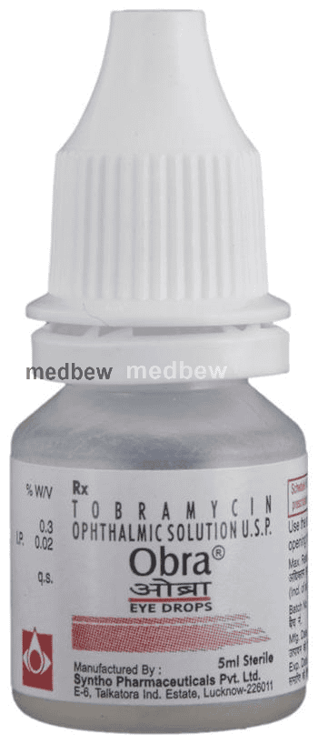 Obra Eye Drops is an antibiotic medicine that is used to treat bacterial infections of the eye (e.g., conjunctivitis) and the eyelids (e.g., blepharitis). It may also help to prevent an infection after an eye injury or surgery.